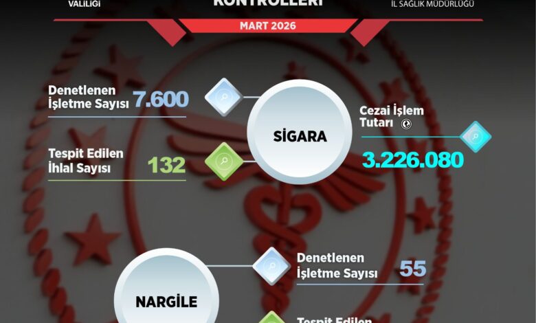 Mart ayı içerisinde yapılan denetimler kapsamında sigara kullanımına yönelik toplam 7 bin 600 işletme ziyaret edildi. Yapılan kontroller sonucunda mevzuata aykırı hareket ettiği tespit edilen 132 ihlal tutanak altına alındı. Bu ihlaller neticesinde toplamda 3 milyon 226 bin 80 TL tutarında cezai işlem uygulandı.