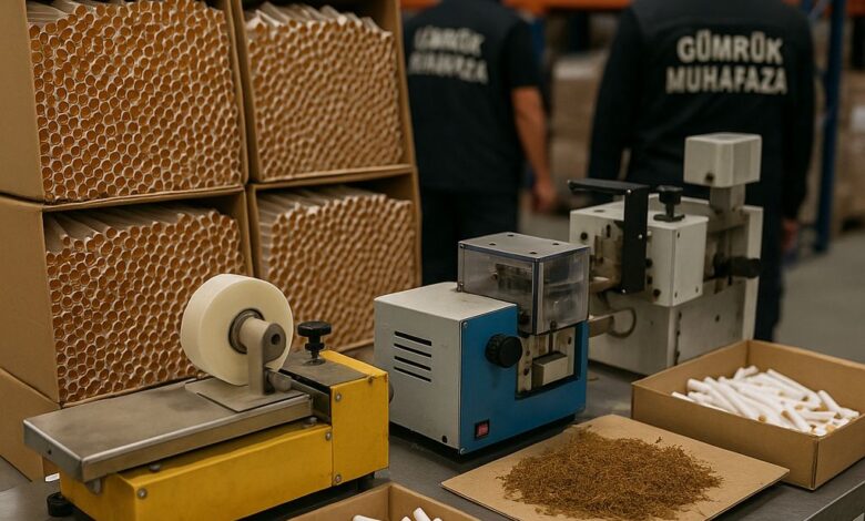 Ticaret Bakanlığı Gümrükler Muhafaza Genel Müdürlüğü’ne bağlı Tütün ve Tütün Mamulü Kaçakçılığı ile Mücadele Özel Ekibi tarafından yürütülen planlı operasyonlarda, kaçak makaron üretiminde kullanılan çeşitli makineler de tespit edilerek el konuldu.