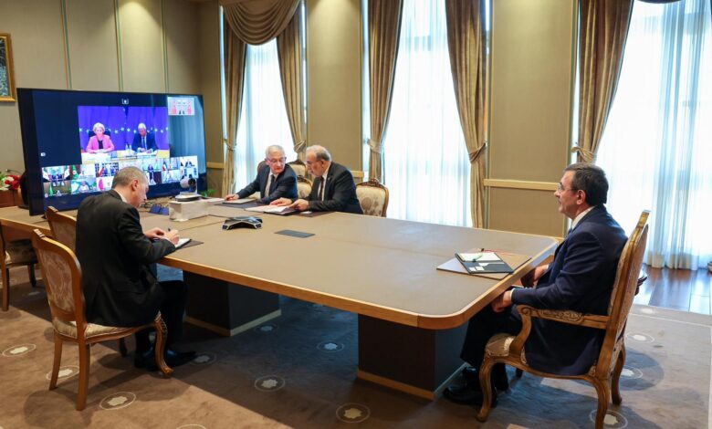 Cumhurbaşkanı Yardımcısı Cevdet Yılmaz, Avrupa Birliği (AB) Konseyi Başkanı Antonio Costa ve Avrupa Komisyonu Başkanı Ursula von der Leyen’in ev sahipliğinde gerçekleştirilen Çevrimiçi Liderler Toplantısı’na katıldı. Yılmaz, toplantıda Cumhurbaşkanı Recep Tayyip Erdoğan’ı temsil etti.