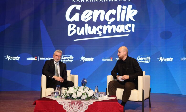 Kahramanmaraş Büyükşehir Belediye Başkanı Fırat Görgel ile Dünya Etnospor Konfederasyonu Başkanı Necmeddin Bilal Erdoğan, Mehmet Akif Ersoy Kültür Merkezi’nde düzenlenen Pusula Maraş Gençlik Buluşması programı kapsamında gençlerle bir araya geldi. Programa gençlerin yoğun ilgi göstermesi dikkat çekerken, salonun tamamen dolması etkinliğe olan ilgiyi ortaya koydu.