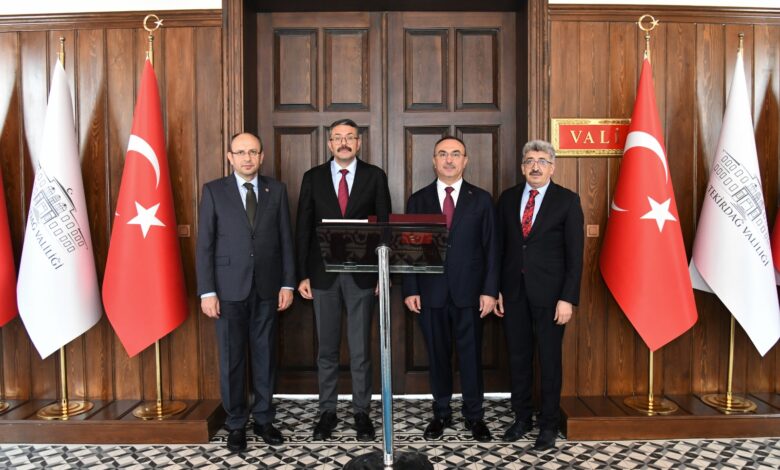 İçişleri Bakan Yardımcısı Ali Çelik, İller İdaresi Genel Müdürü Mehmet Emin Bilmez ve Bursa Milletvekili Mustafa Yavuz ile birlikte Tekirdağ Valiliği’nde Vali Recep Soytürk ile bir araya geldi.