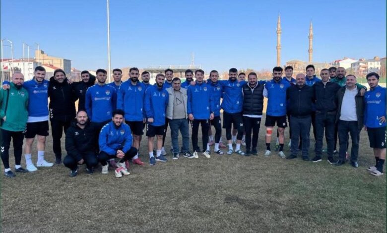 Kars Amatör Spor Kulüpleri Federasyonu (ASKF) Başkanı Tuncay Altunterim ile Akyaka Gençlerbirliği Spor Kulübü Başkanı Veli Aramaz, Kars36 Spor takımını antrenman sırasında ziyaret etti.